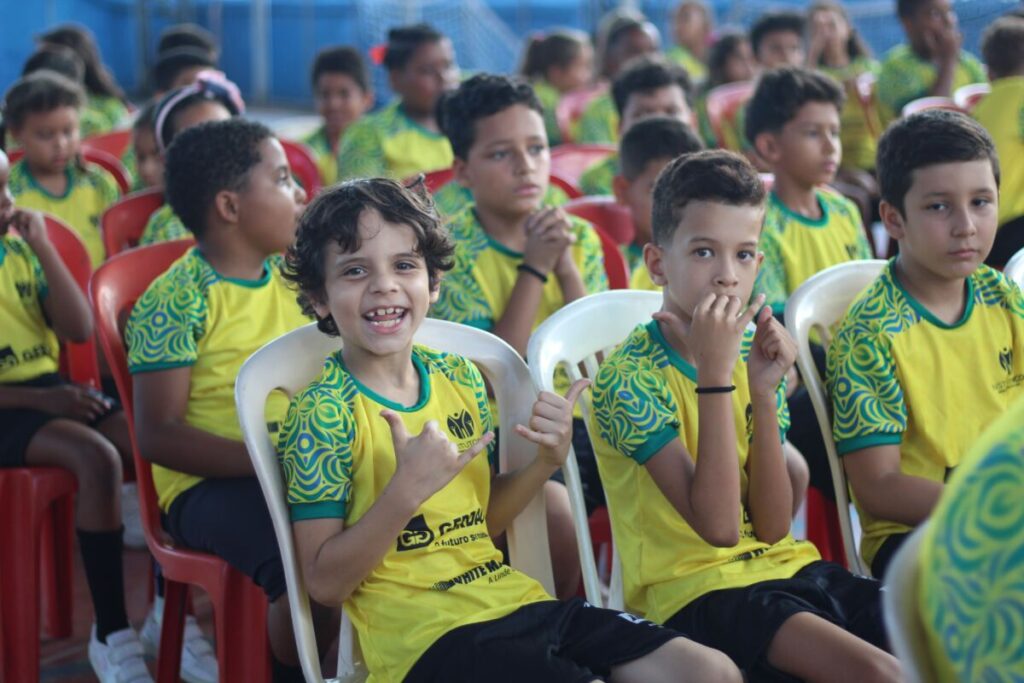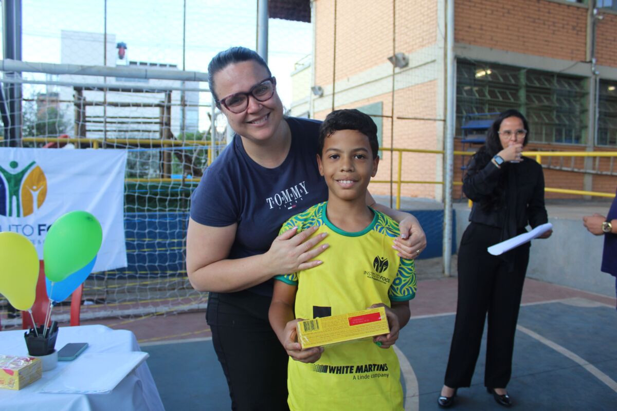 Durante o encontro, foram entregues os novos uniformes e materiais esportivos que serão utilizados ao longo do ano, simbolizando o compromisso com a qualidade e a continuidade das atividades esportivas e culturais promovidas pelo Instituto Foco.