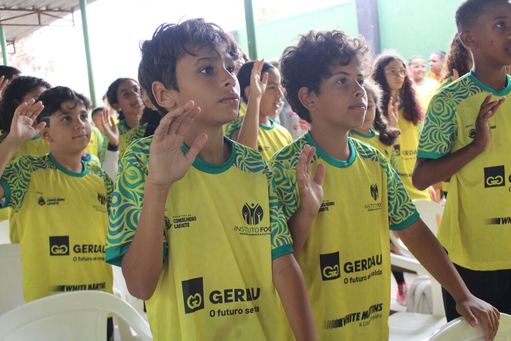 Na manhã do dia 12 de setembro (sexta-feira), os beneficiários do núcleo Conselheiro Lafaiete receberam os novos uniformes do ciclo 2025/2026 do Instituto Foco Excelência no Esporte & Cultura. Além de receberem os uniformes, os beneficiários participaram de uma linda cerimônia de lançamento na Escola Municipal Professora Nilce Moreira.