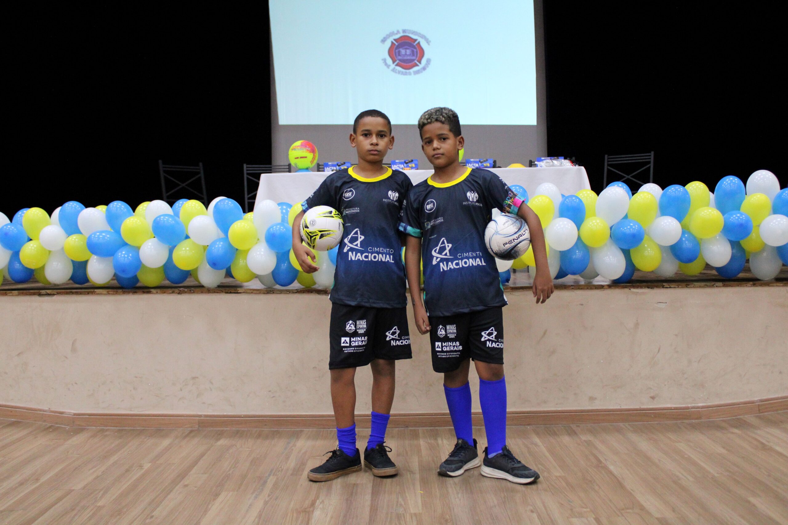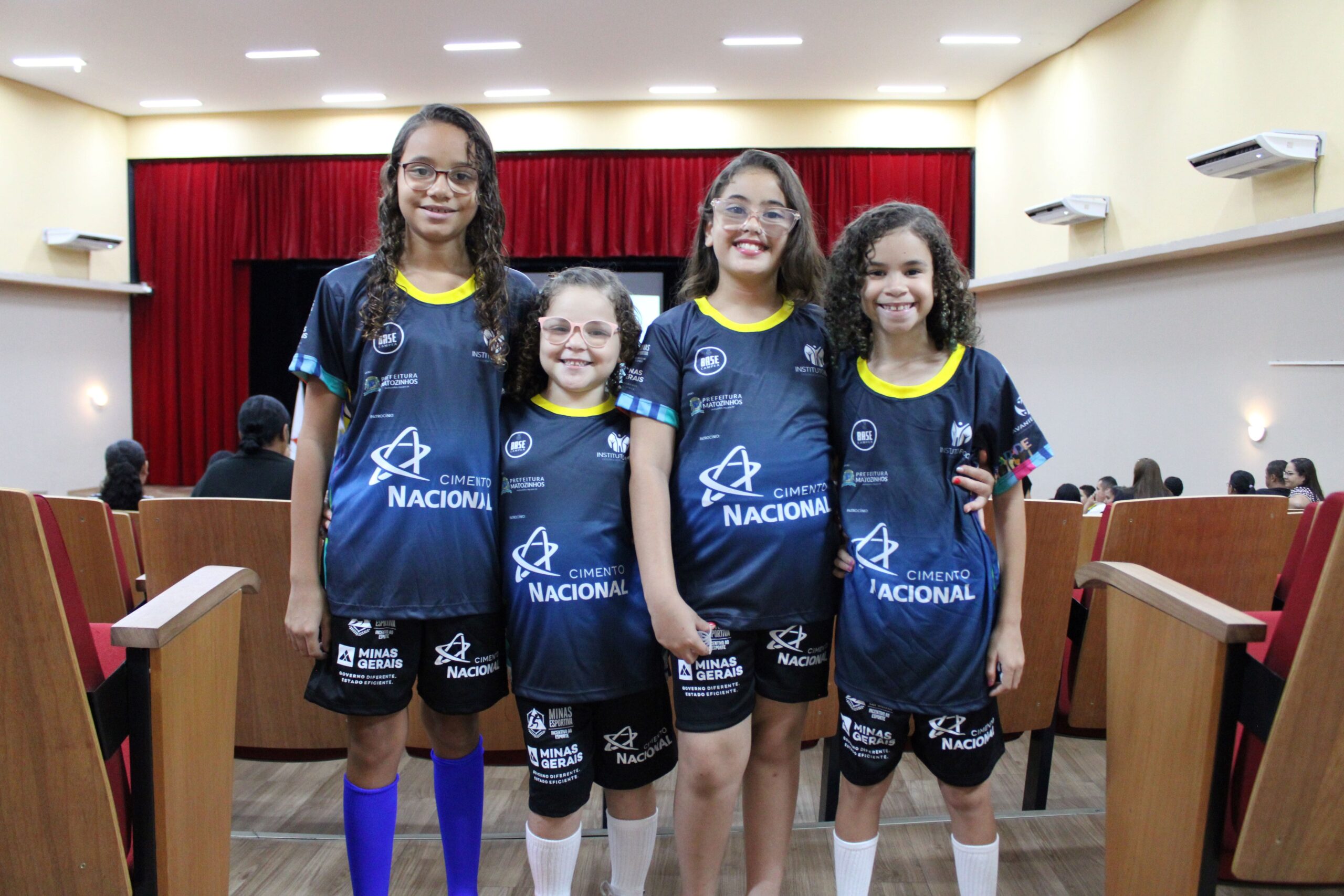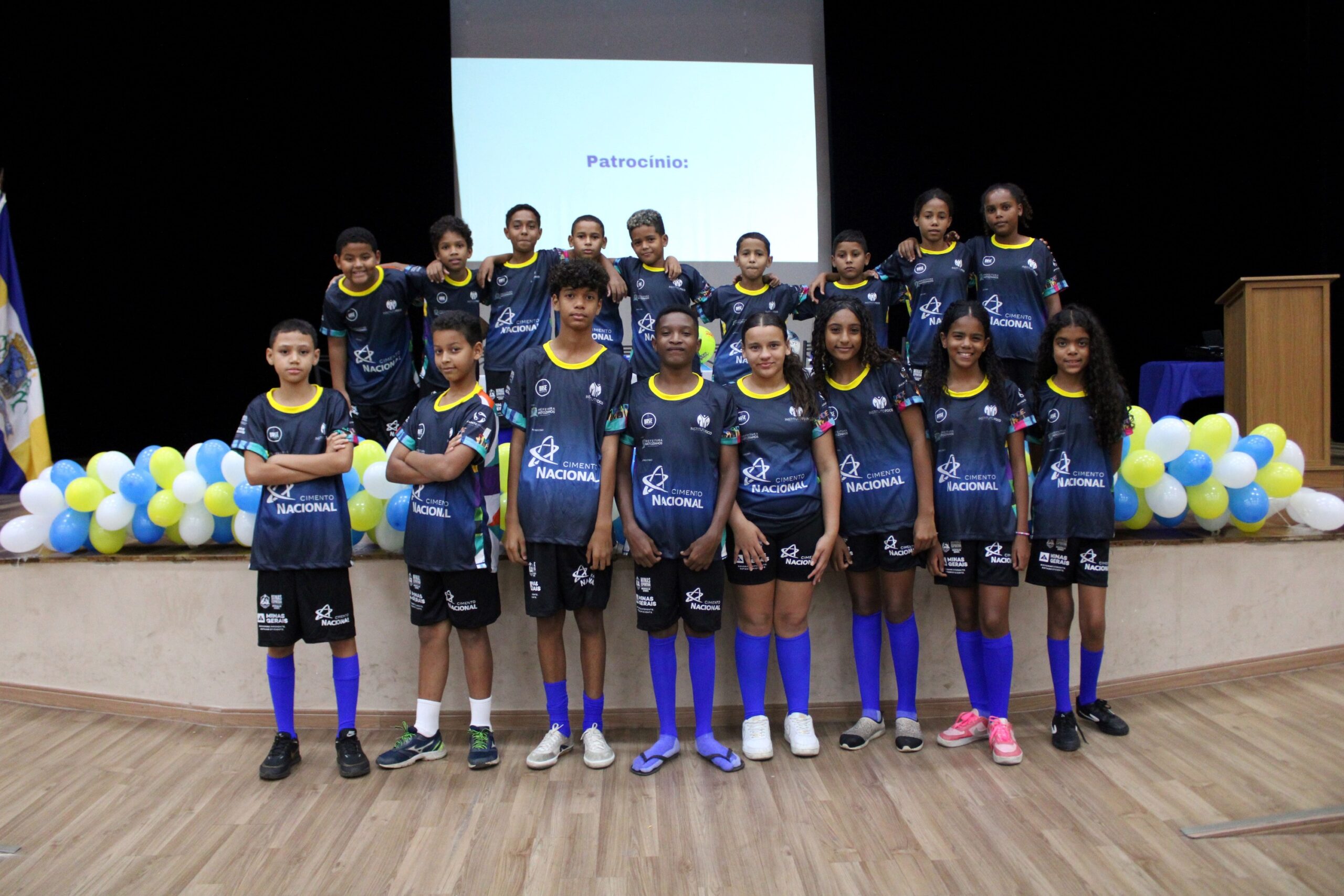 Com a presença de patrocinadores, apoiadores, parceiros, pais e responsáveis, os beneficiários dos núcleos Matozinhos 1 e 2 receberam os uniformes do ciclo 2023/2024 em uma cerimônia muito linda no Palácio da Cultura no dia 29 de fevereiro. Além dos uniformes, os beneficiários receberam todo o material esportivo que será usado nas aulas de futsal, futebol e voleibol.